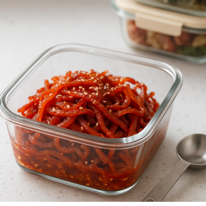 - 간은 간장·설탕·참기름·후추·깨의 조합이 기본이며, “짭짤 4 : 단맛 3 : 고소함 3” 비율이 안정적이다.