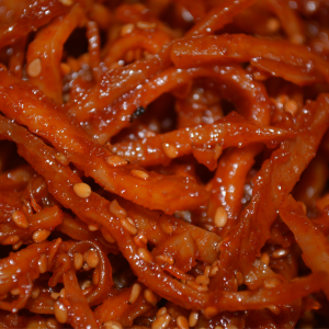 - 약간 간을 조금 더 세게 맞추고, 물기 없이 깔끔하게 만들어 밥 위에 올려 덮밥처럼 사용한다.